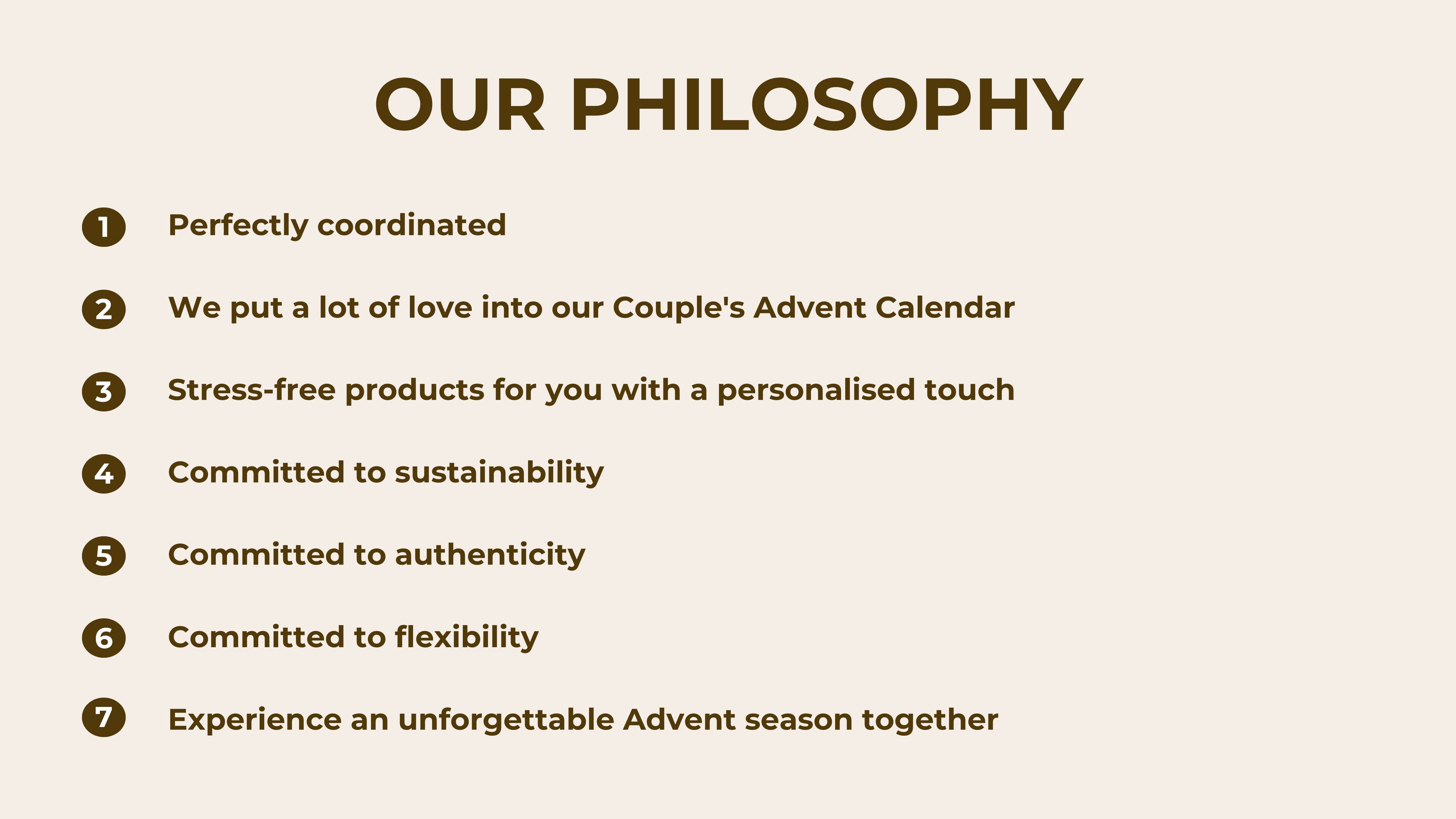 We are Leo, Sophia, Emma, and Nick - two couples who have been close friends for many years. Our friendship is characterized by shared experiences and loving traditions, including making Advent calendars for our partners. Every year, we put a lot of time and effort into creating unique Advent calendars filled with handwritten letters, loving cards, small gifts, and much more. These calendars brought our partners a lot of joy and made the pre-Christmas period something very special. But as beautiful as this tradition was, it always involved a great deal of effort. Producing the calendars was not only time-consuming but also expensive. The question also arose: why should only one person receive the joy and surprises of an Advent calendar? This shared experience is something that could make this time of year even more special and help you to bond even more, so we found a solution. We created an Advent calendar that is not only stress-free and affordable but also brings joy to both partners and brings them closer together.